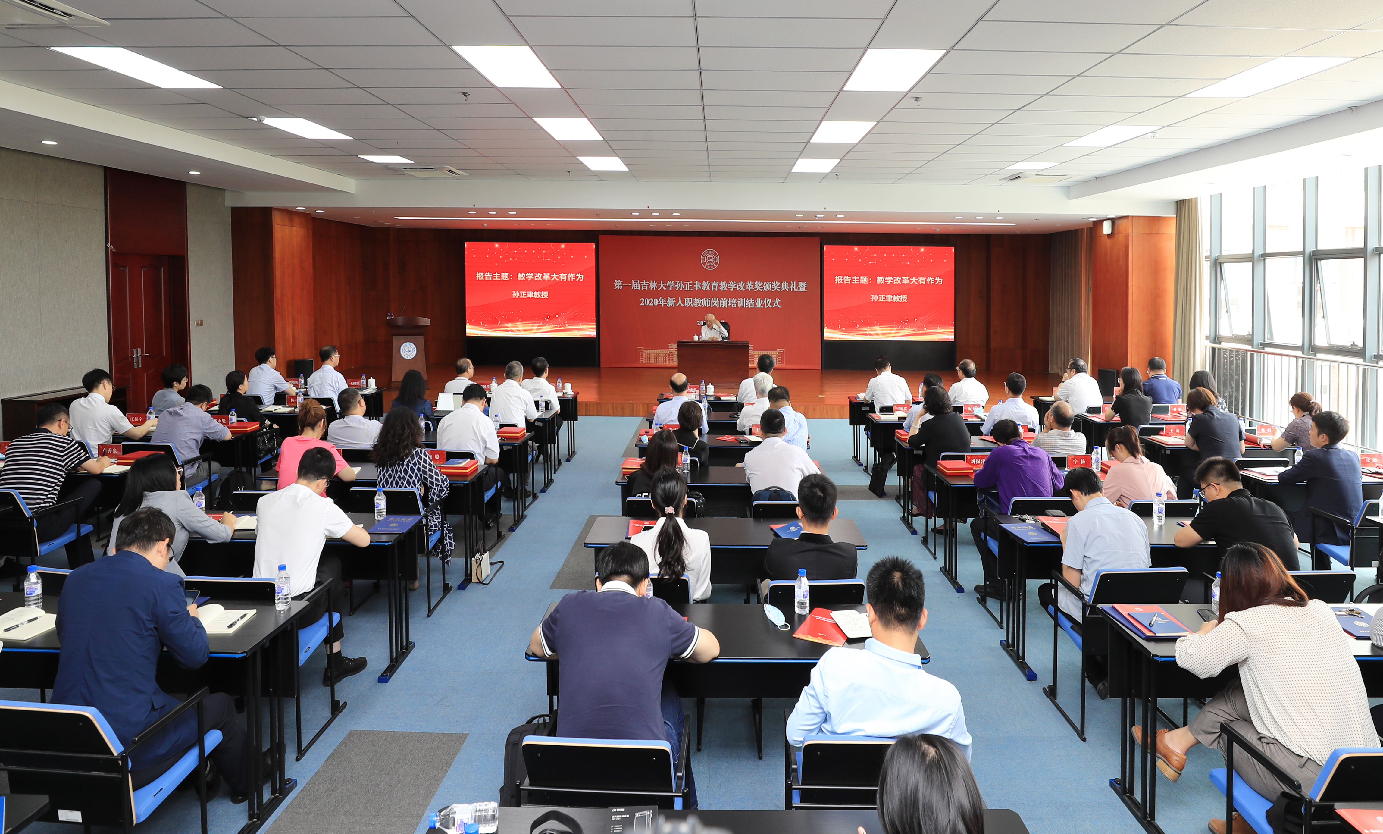 贾玉娇、杨明分别代表首届孙正聿教育教学改革奖获奖教师、2020年新入职教师进行发言。他们表示,将以老一辈优秀教师为榜样,传承和弘扬吉林大学光荣传统和优良作风,不断提升专业素养,以饱满的热情和昂扬的状态投身到高等教育事业中,为学校各项事业发展作出青年教师的贡献。