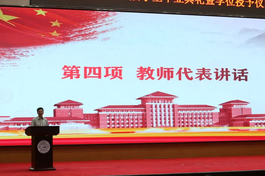 典礼第三项,由在校生代表2018级哲学专业本科生刘昕冉上台发言,为毕业的师兄师姐们送上诚挚的祝福和殷切的期盼。以毕业的师兄师姐们为榜样,激扬青春、不负韶华!希望师兄师姐们能在未来“乘长风破万里浪”,翩翩归来、仍是少年!