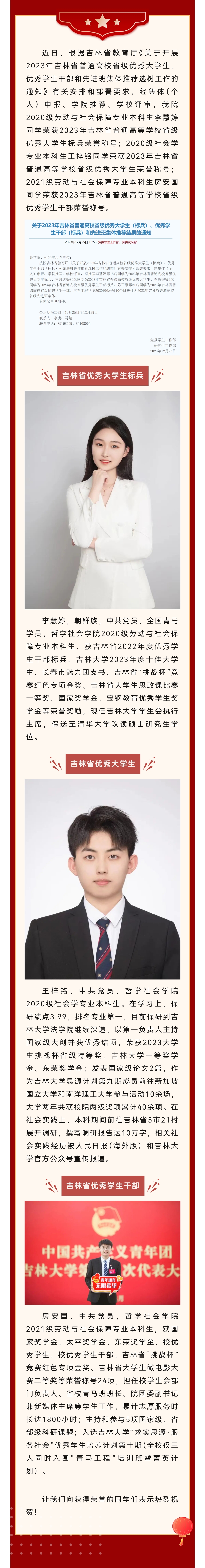 丝袜诱惑 学子荣获2023年吉林省优秀大学生标兵、优秀大学生、优秀学生干部荣誉称号