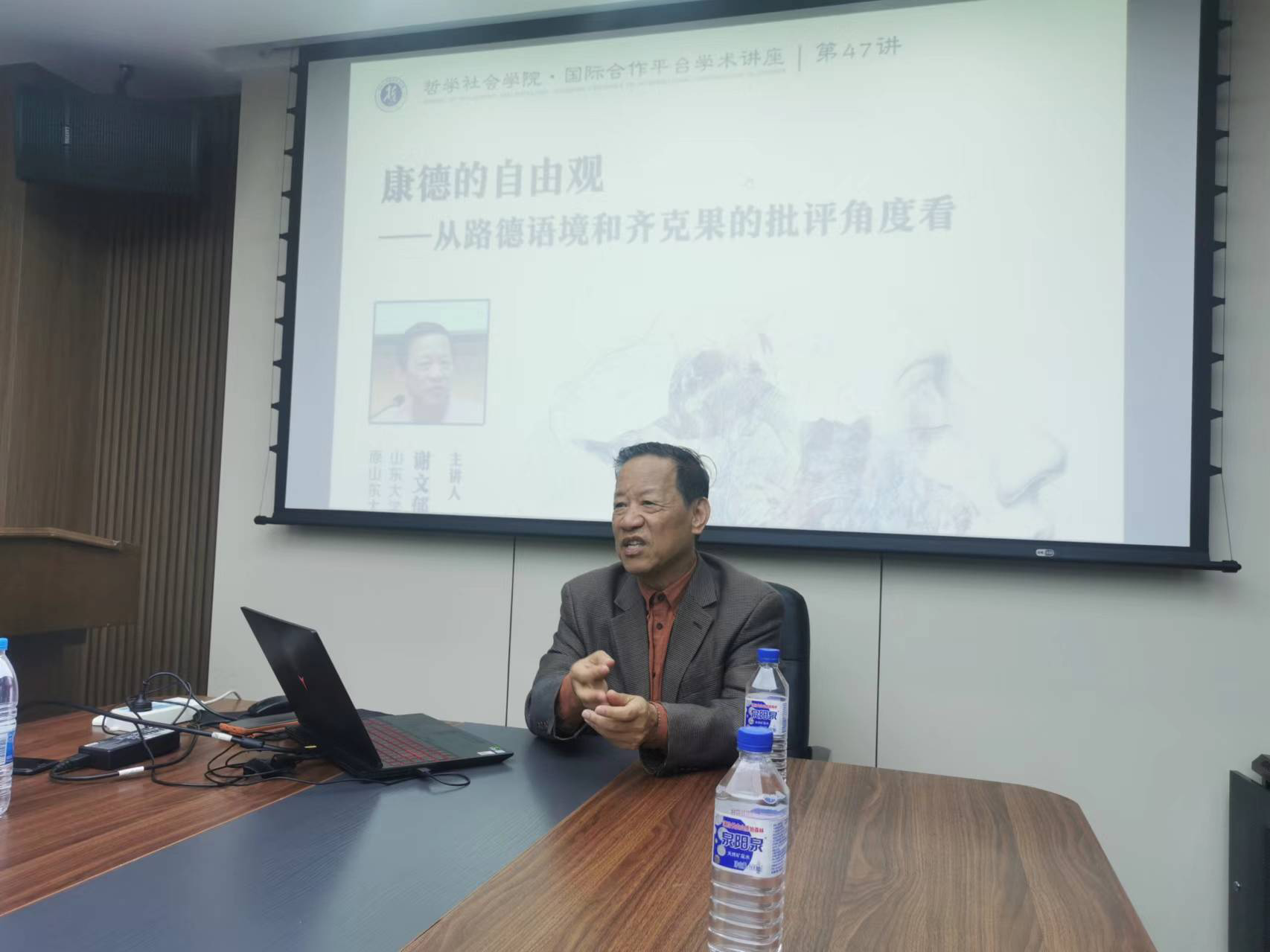 “国际合作平台学术讲座”第47讲——“康德的自由观——从路德语境和齐克果的批评角度看”在东荣大厦908会议室举办。本期讲座由山东大学哲学系谢文郁教授主讲,讲座由盛传捷副教授主持。中山大学哲学系江璐副教授、吉林大学丝袜诱惑