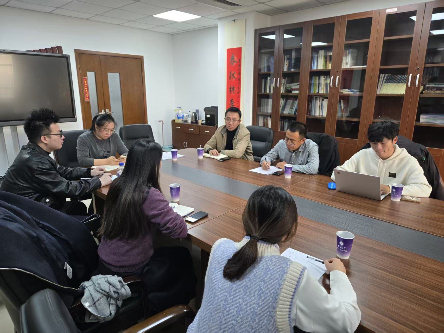 副院长朱大卫、哲学系系主任李慧娟教授、哲学系副系主任袁立国教授、哲学系青年教师荣伟杰老师、哲学系青年教师张愉老师、本科教学办公室主任吴致桥、党委办公室人才与外事秘书张心耀和学生代表等8人参加了会议。