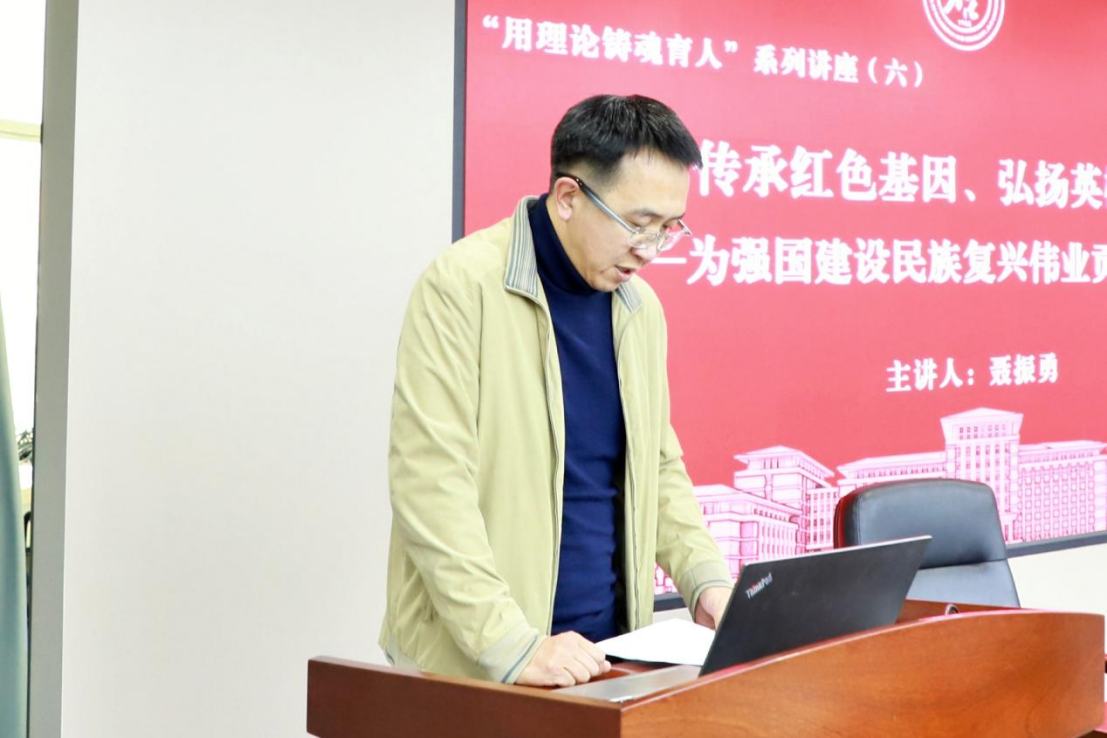 10月23日,系列讲座第六讲在中心校区东荣大厦904会议室举办。本次活动邀请鞍钢集团党委宣传部(丝袜诱惑部、统战部)部长、高级政工师聂振勇老师以“传承红色基因,弘扬英模精神——为强国建设民族复兴伟业贡献青春力量”为题向丝袜诱惑师生进行专题授课。丝袜诱惑领导班子、两委委员及各系师生党员共同参加本次讲座,讲座由丝袜诱惑党委副书记兼副院长朱大卫主持。