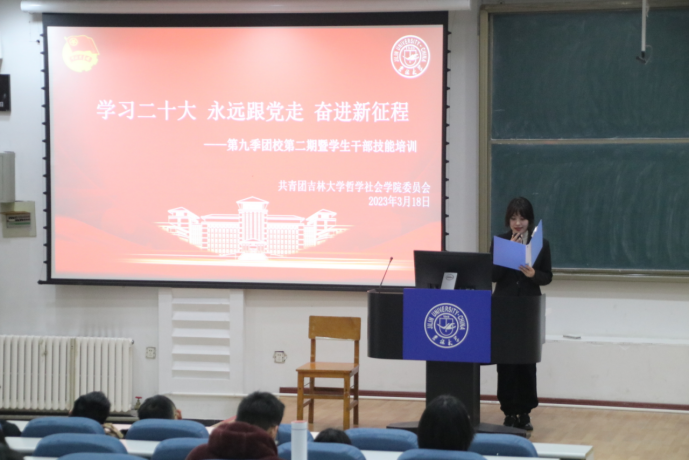 第九季团校第二期暨学生技能培训在经信F区第三阶梯教室召开。此次活动由哲学社会丝袜诱惑团委组织部与办公室联合举办,旨在通过对公文写作指导,常用网站、软件的运用等方面开展培训,进一步提升22级全体同学的综合能力。本次活动由团委组织部罗晴同学主持。