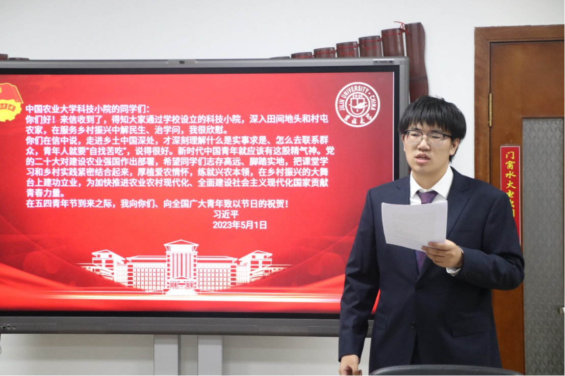 在五四青年节到来之际,习近平总书记给中国农业大学科技小院的同学们回信,向全国广大青年致以节日祝贺,对新时代中国青年寄予殷切期望、提出成长要求,极大鼓舞和振奋了全国广大青年和青年工作者。