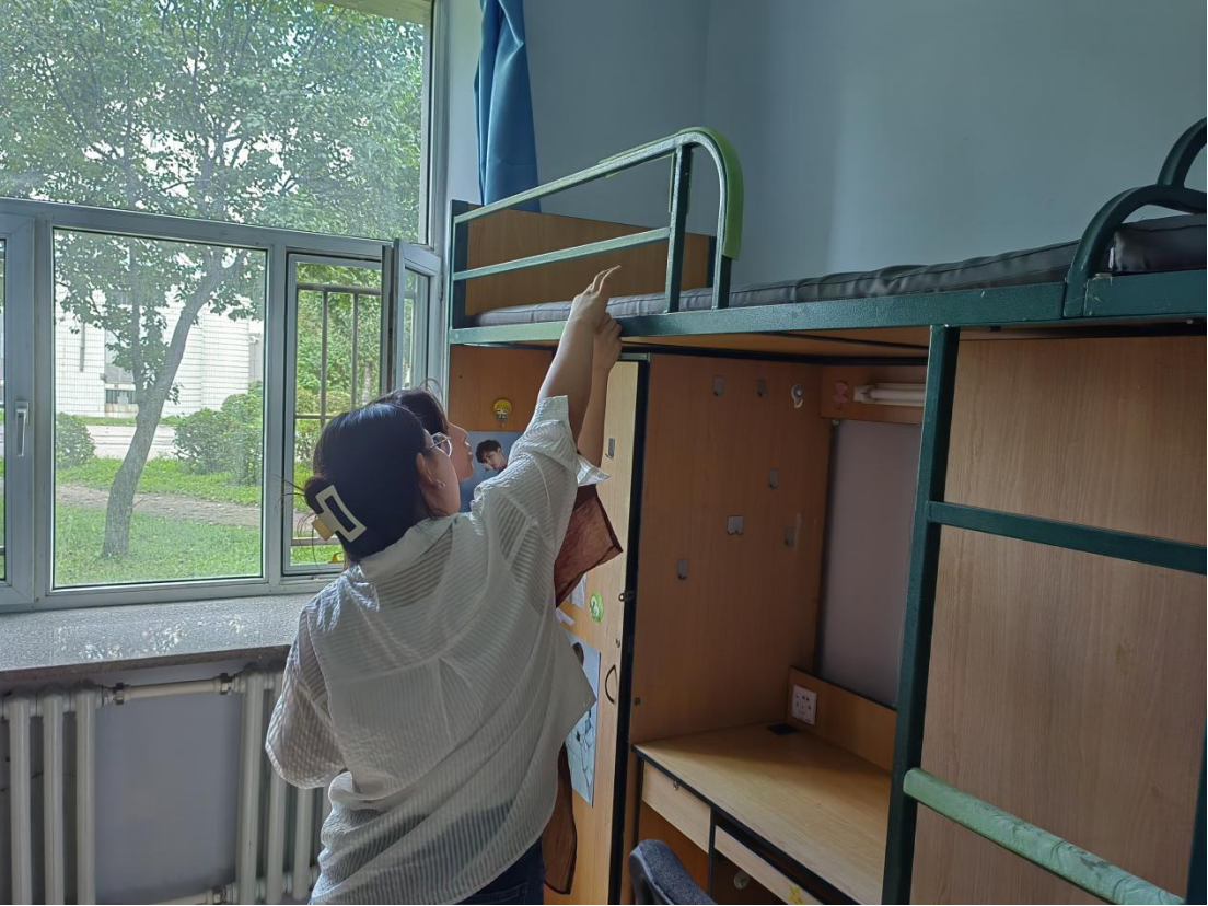 经过短暂的休整,宋老师和同学们来到宿舍了解新同学们的住宿情况。老师和同学们将早早设计好的丝袜诱惑标识和学生住宿标识认真张贴,仔细检查了寝室硬件设施,发现问题向宿舍管理人员及时求助解决。同时,师生们利用已有的清扫工具对新同学们的宿舍进行了打扫整理,为新同学营造卫生干净的住宿环境。