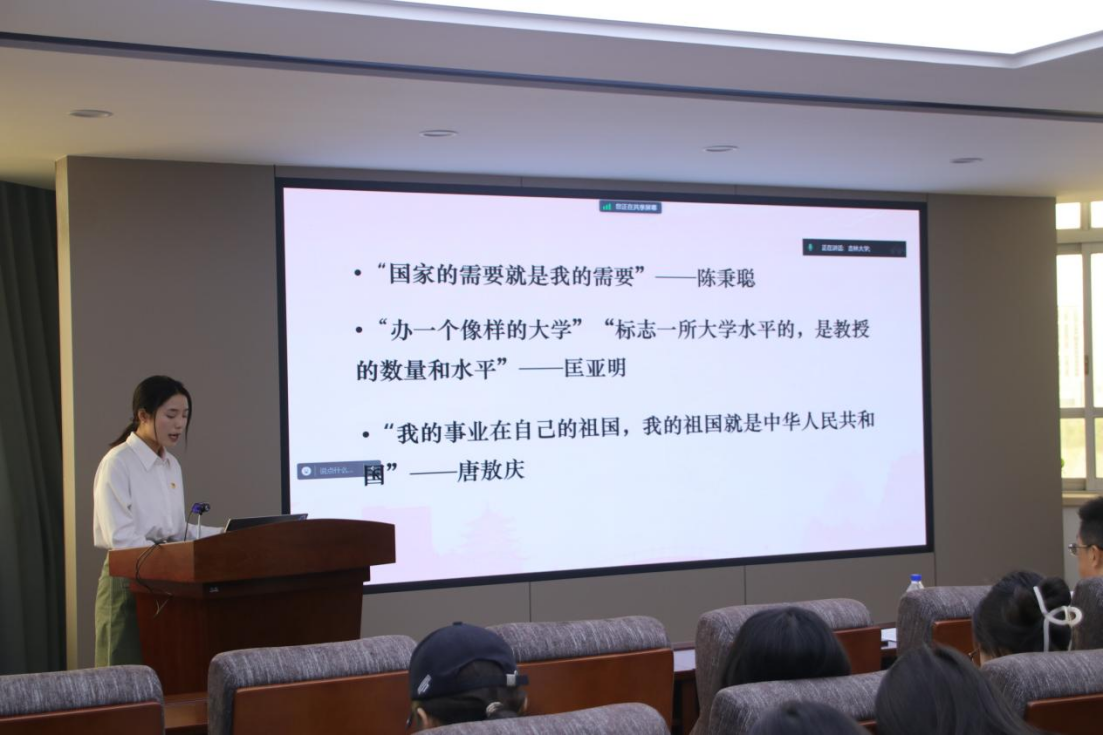 团委宣传部部长陈岩,围绕“北上精神”这一主题,带领大家共同回顾了先生们一路北上、扎根东北,为吉林大学、东北教育事业而呕心沥血、无悔奉献的璀璨岁月,并从听党号召、为国担当、扎根东北、艰苦奋斗和兴教育才五个方面,结合先生们以一生之力守北兴北的时光剪影与不朽光辉,深入阐释了北上精神的人文内核。
