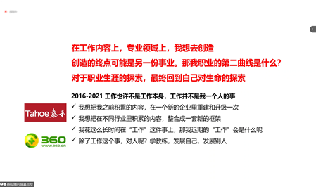 随后,在讲述2007年到2021年从职场小白开始发展的经历时,孙悦博师兄借此勉励同学们,“与其抱怨运气不好,不如把自己看成天选之人。”他鼓励同学们在专业发展时做到“专精”,“专精”会让人长时间持续一件工作,把工作做得很精细,从而形成自己独特的竞争力,让人愿意去信任。